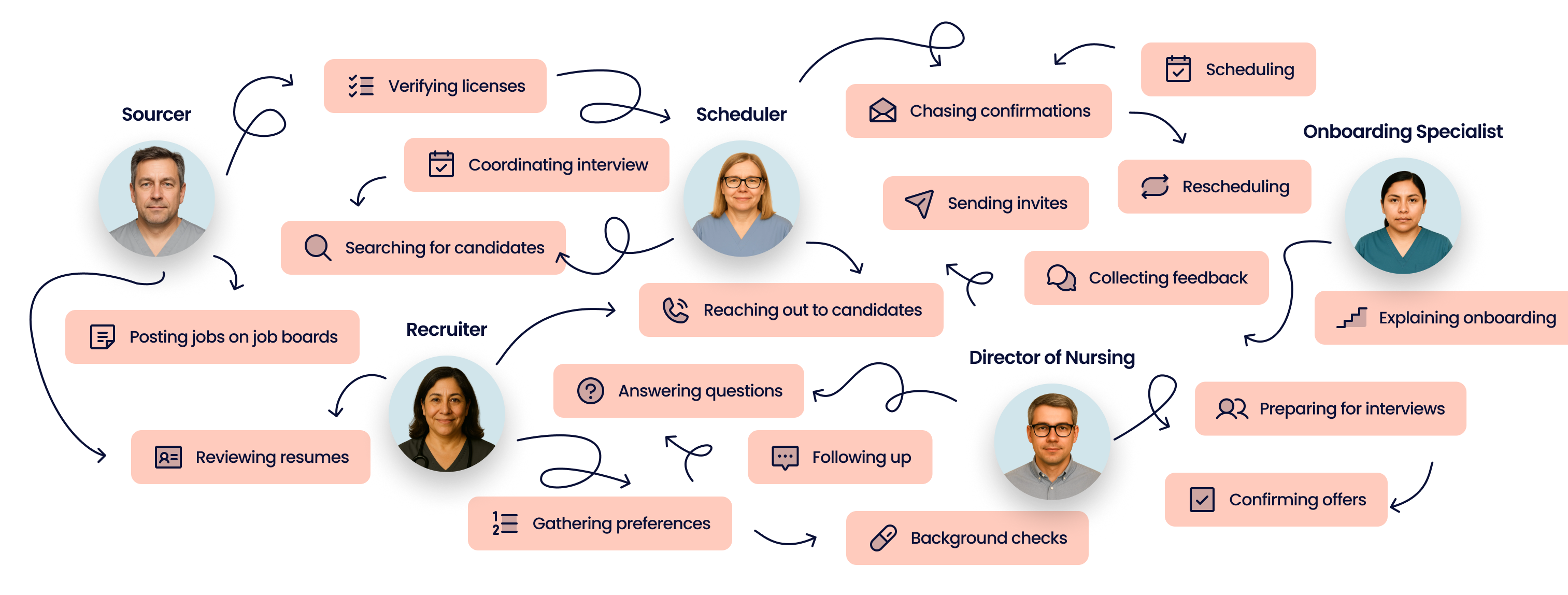Outreach begins, resumes are screened, interviews are scheduled — all handled by AI assistants.